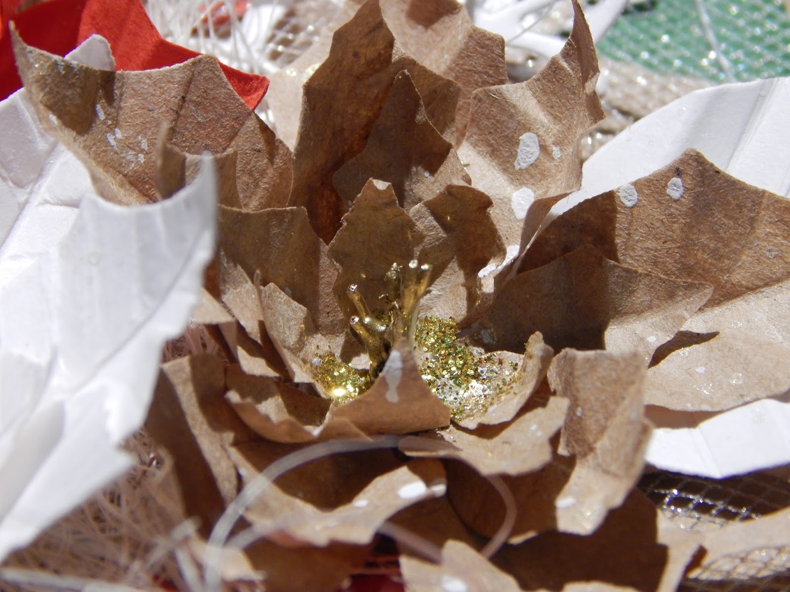 ОЭ - три цветка пуансетии (традиционный новогодний цветок) и золото (блестки и брызги краски)